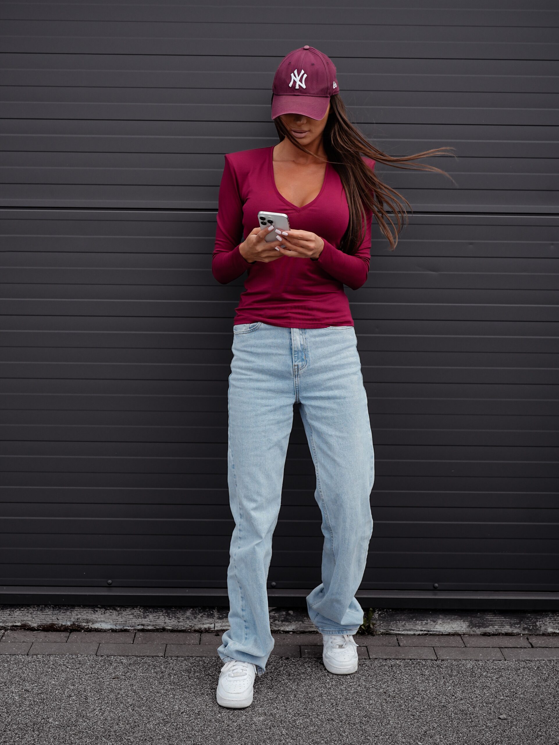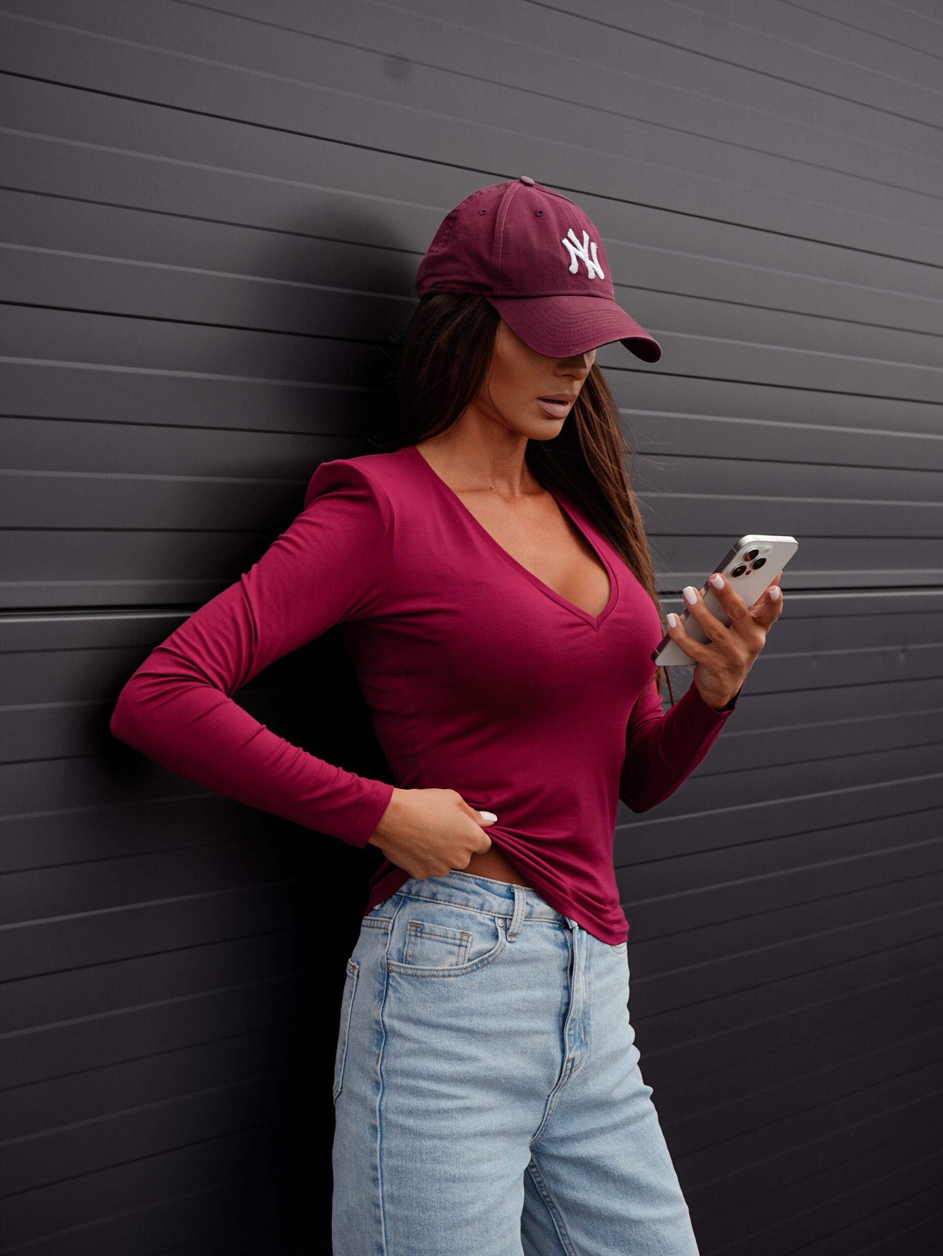 Bluzka z wiskozy – burgundowa z dekoltem w V