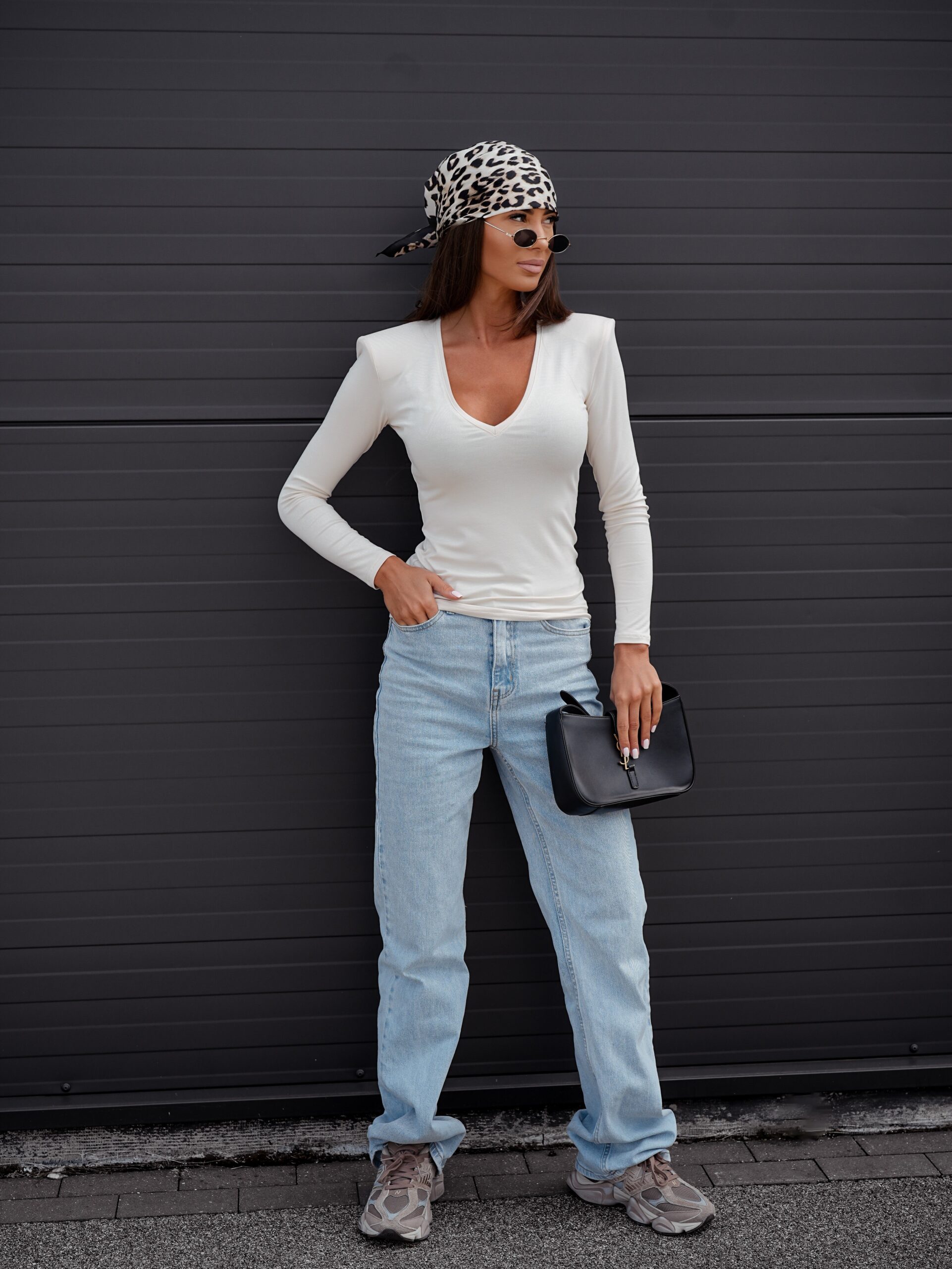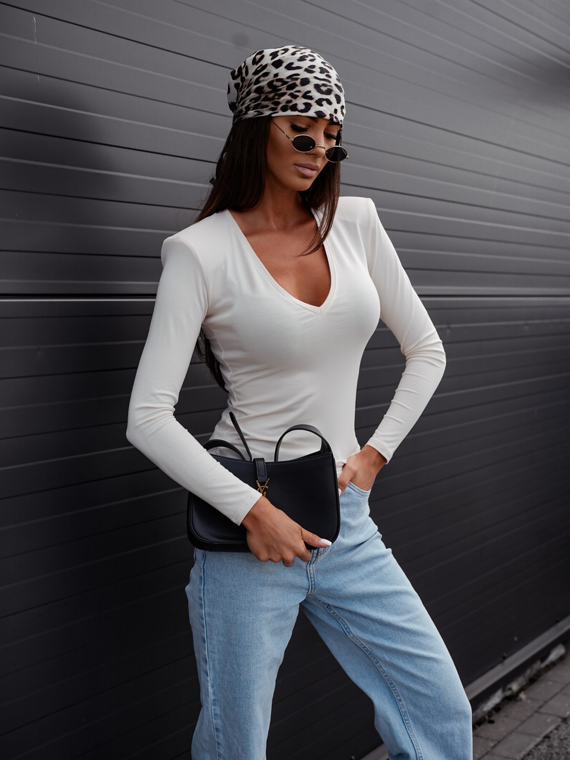 Elegancka, a jednocześnie niezwykle wygodna bluzka wykonana w 100% z miękkiej, oddychającej wiskozy. Jej dopasowany krój pięknie podkreśla sylwetkę, a głęboki dekolt w V dodaje kobiecego charakteru. Intensywny biały kolor nadaje stylizacji wyrazistości, a długie rękawy czynią ją idealną na chłodniejsze dni.