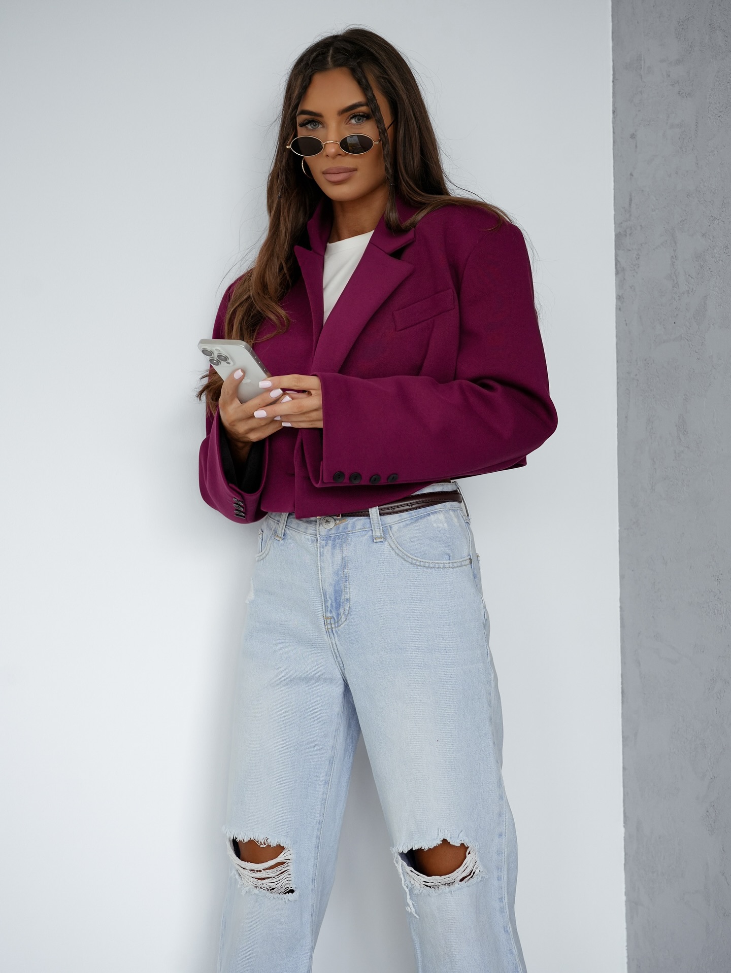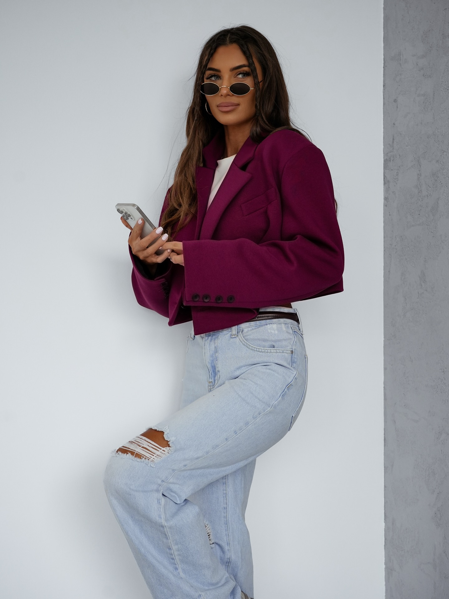 Zanurz się w głębi elegancji z marynarką w odcieniu burgundu. Ten ponadczasowy kolor łączy w sobie klasykę i wyrafinowanie, doskonale sprawdzając się zarówno w codziennych stylizacjach, jak i tych bardziej eleganckich.