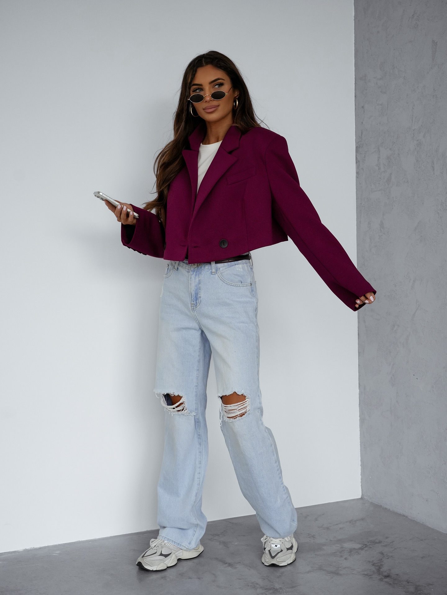 Wykonana z miękkiej dzianiny dresowej, marynarka zapewnia pełen komfort noszenia, a jej luźny, oversize’owy krój wpisuje się w aktualne trendy. Burgundowy kolor pięknie komponuje się z beżami, kremami, bielą oraz złotymi dodatkami.