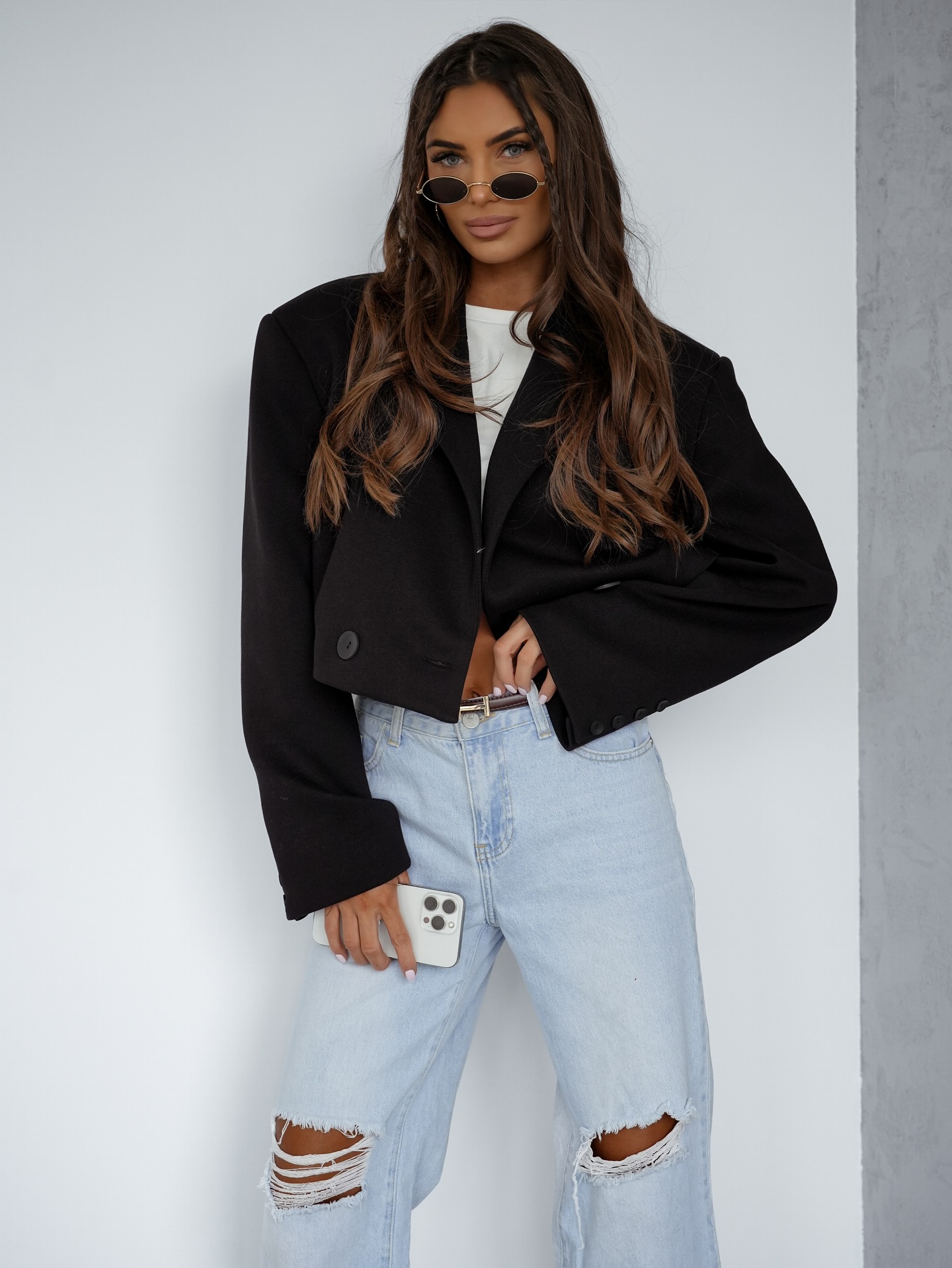 Zanurz się w głębi elegancji z marynarką w odcieniu czarna. Ten ponadczasowy kolor łączy w sobie klasykę i wyrafinowanie, doskonale sprawdzając się zarówno w codziennych stylizacjach, jak i tych bardziej eleganckich.