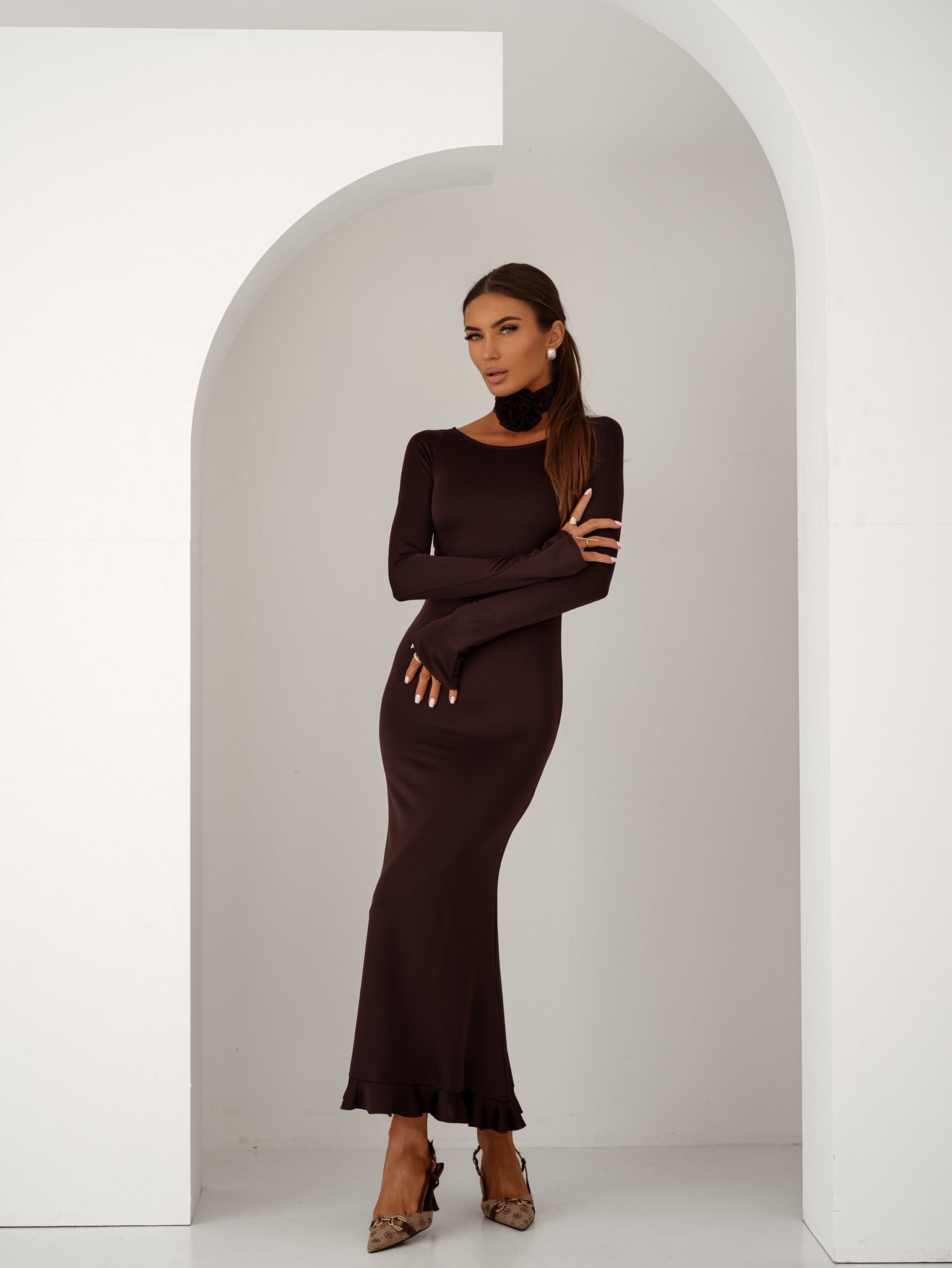 Sukienka ROSIE to kwintesencja kobiecej elegancji i klasy. Długa, dopasowana forma podkreśla sylwetkę, a delikatne detale przy dekolcie nadają całości wyjątkowego charakteru. Wykonana z elastycznego, gładkiego materiału, który pięknie układa się na ciele i zapewnia komfort noszenia.
