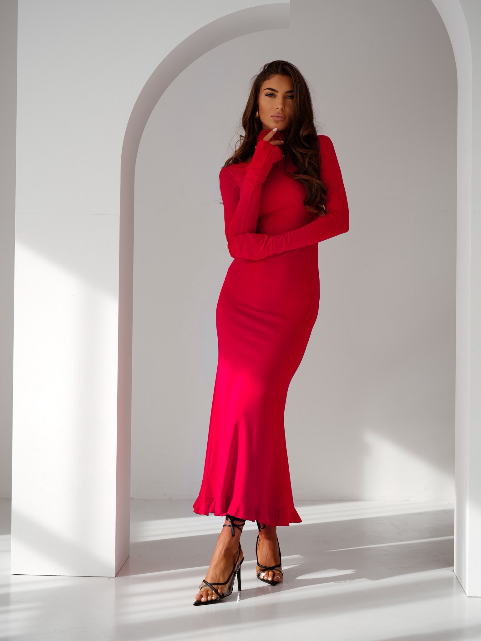Sukienka ROSIE to kwintesencja kobiecej elegancji i klasy. Długa, dopasowana forma podkreśla sylwetkę, a delikatne detale przy dekolcie nadają całości wyjątkowego charakteru. Wykonana z elastycznego, gładkiego materiału, który pięknie układa się na ciele i zapewnia komfort noszenia.