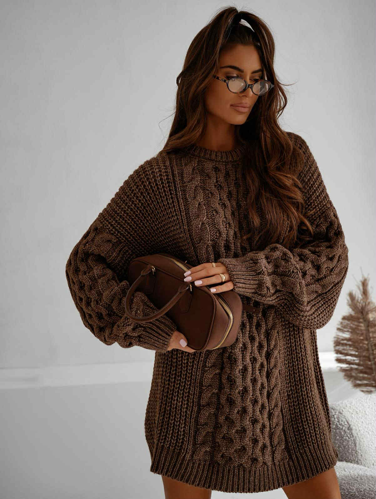 Odkryj styl i komfort z naszą sukienką sweterkową z grubego, mięsistego materiału. Ciepła i przytulna, idealna na chłodniejsze dni. Klasyczny warkoczowy splot nadaje jej wyjątkowego charakteru, a dopasowany krój podkreśla sylwetkę.