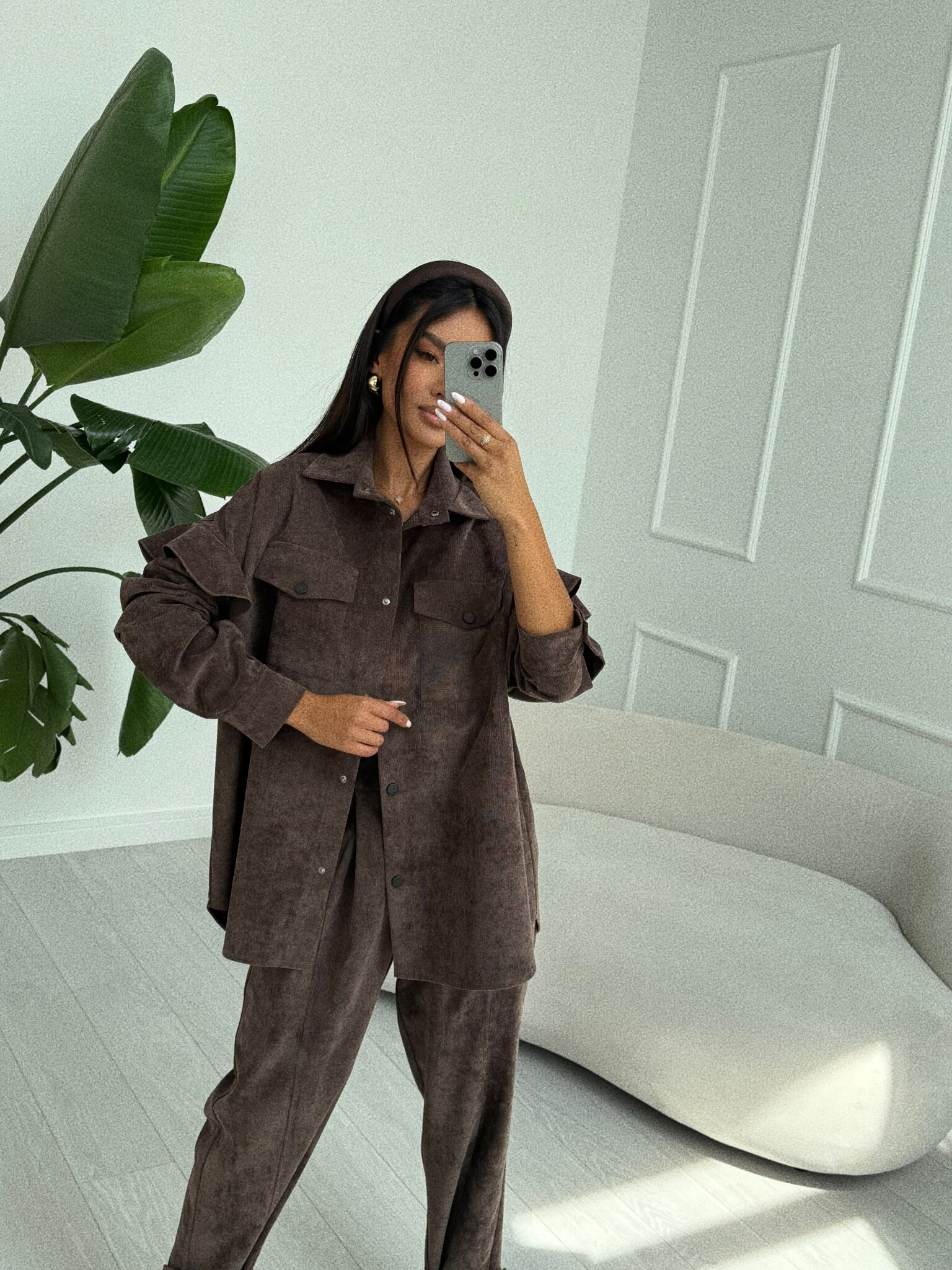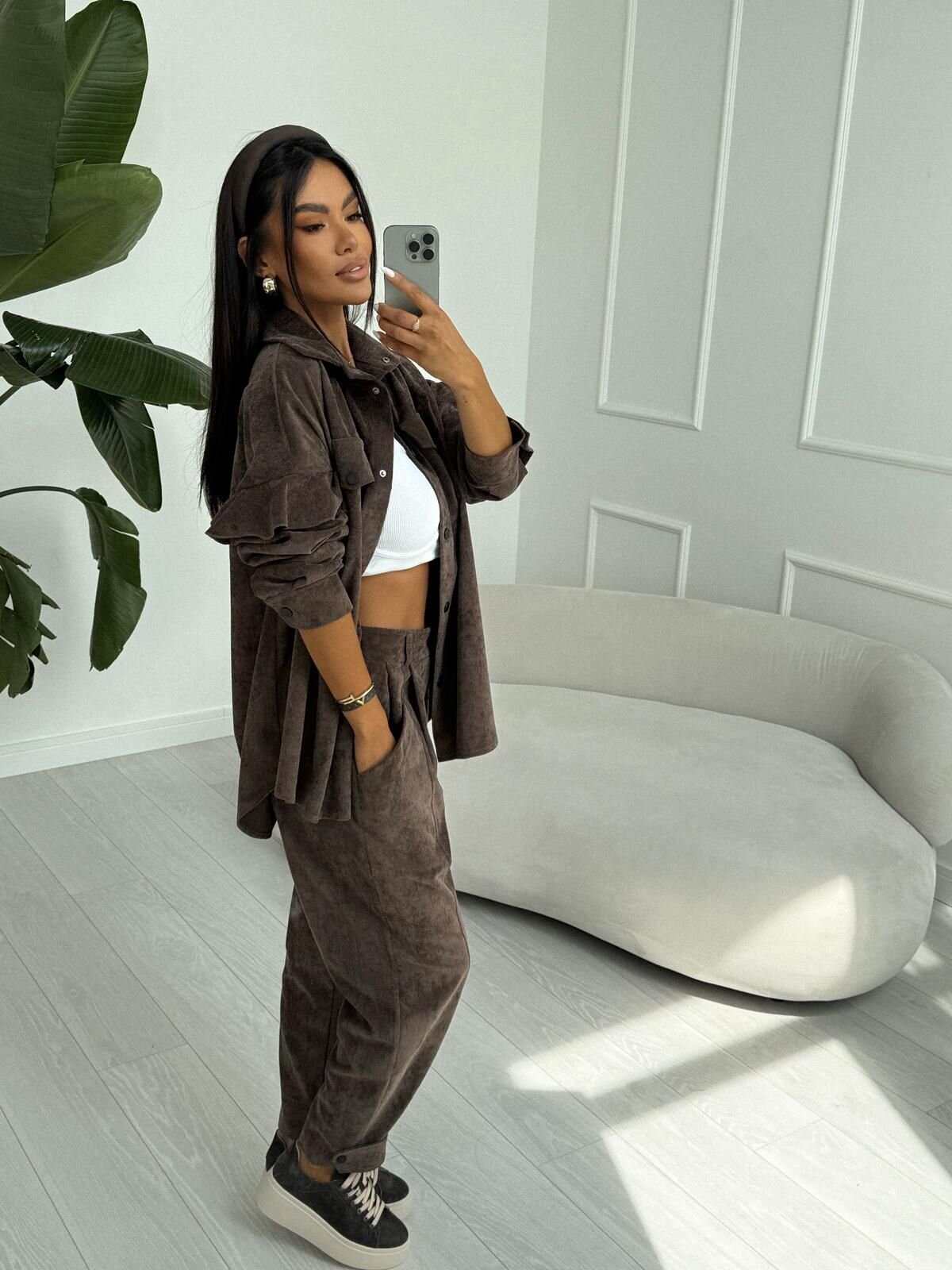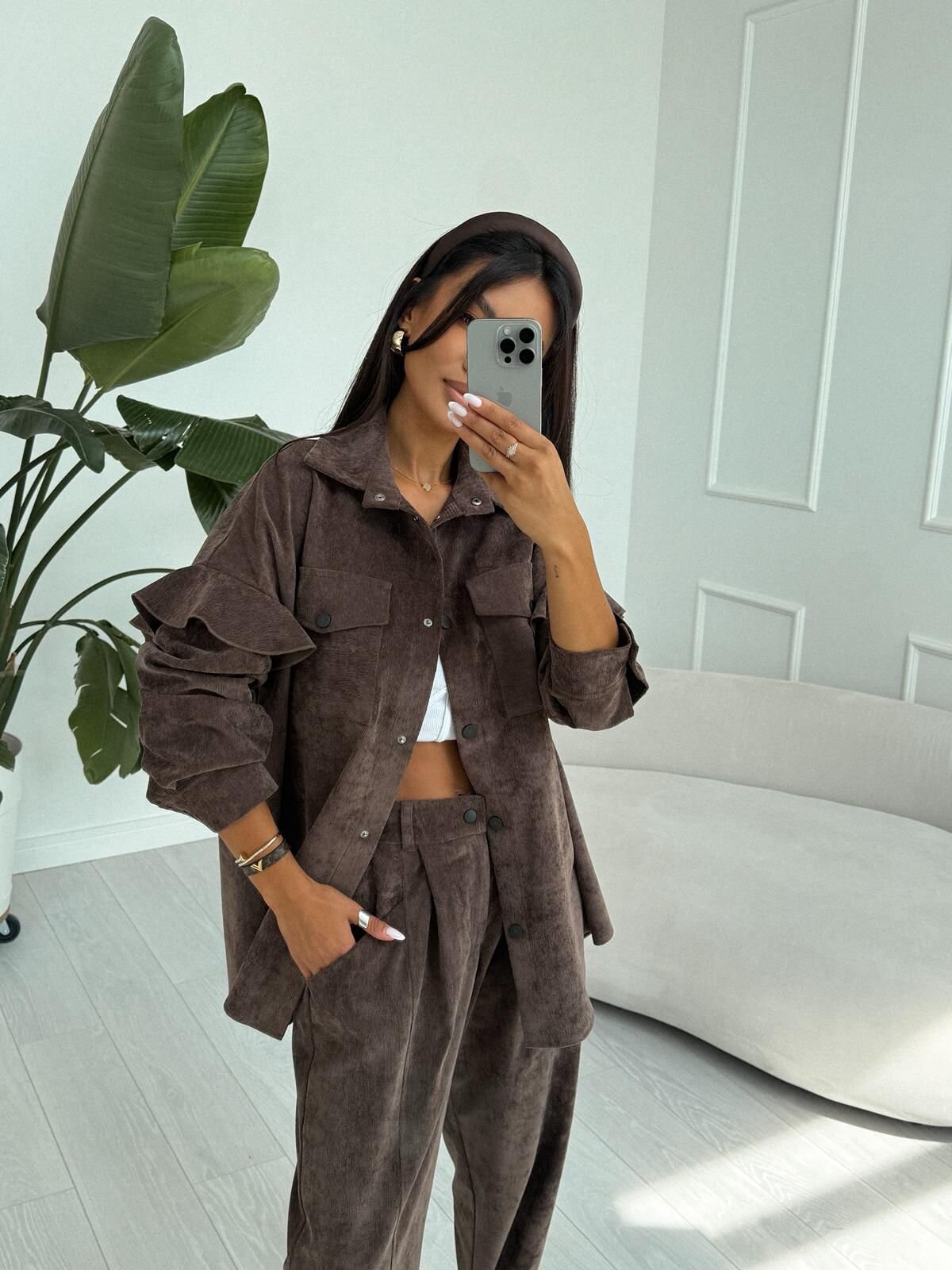 Sztruksowy komplet czekoladowy koszula i spodnie