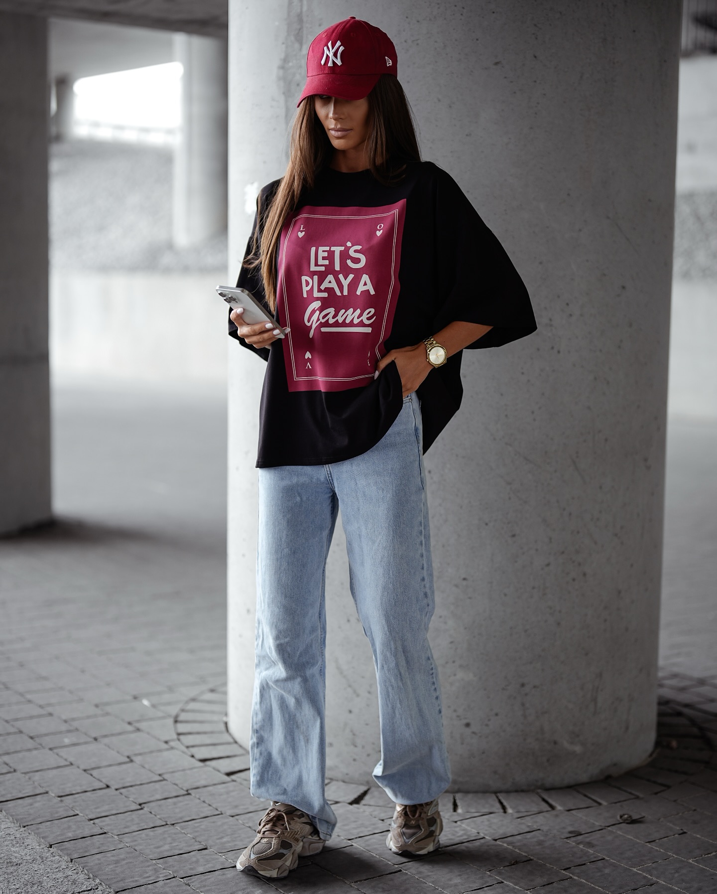 T-shirt oversize let's play - czarnyT-shirt oversize let’s play – czarny